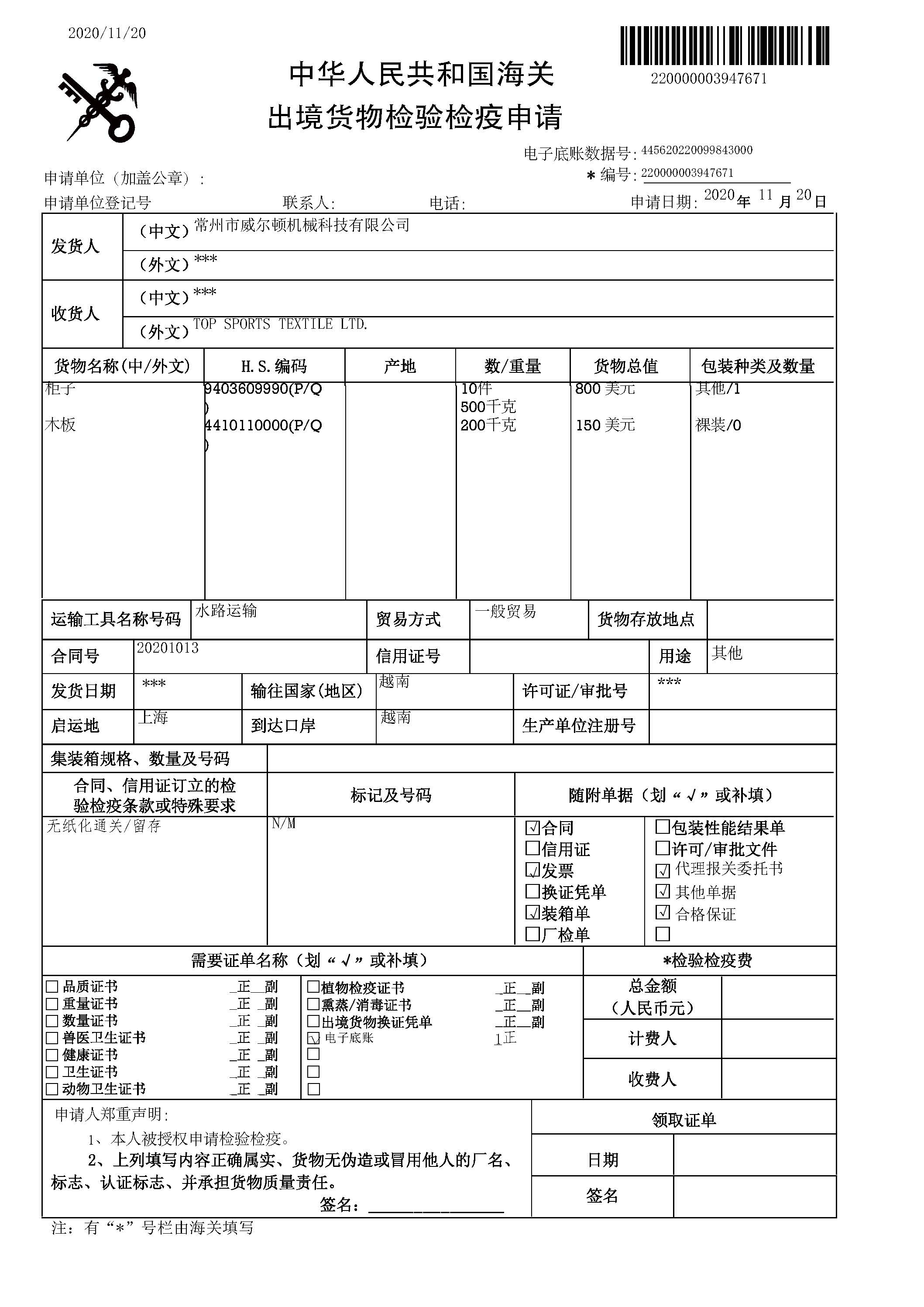 商检费用一般是几百到几千元不等,具体看箱单跟发票,取决于出口木制品的数量、质量、目的地等因素。